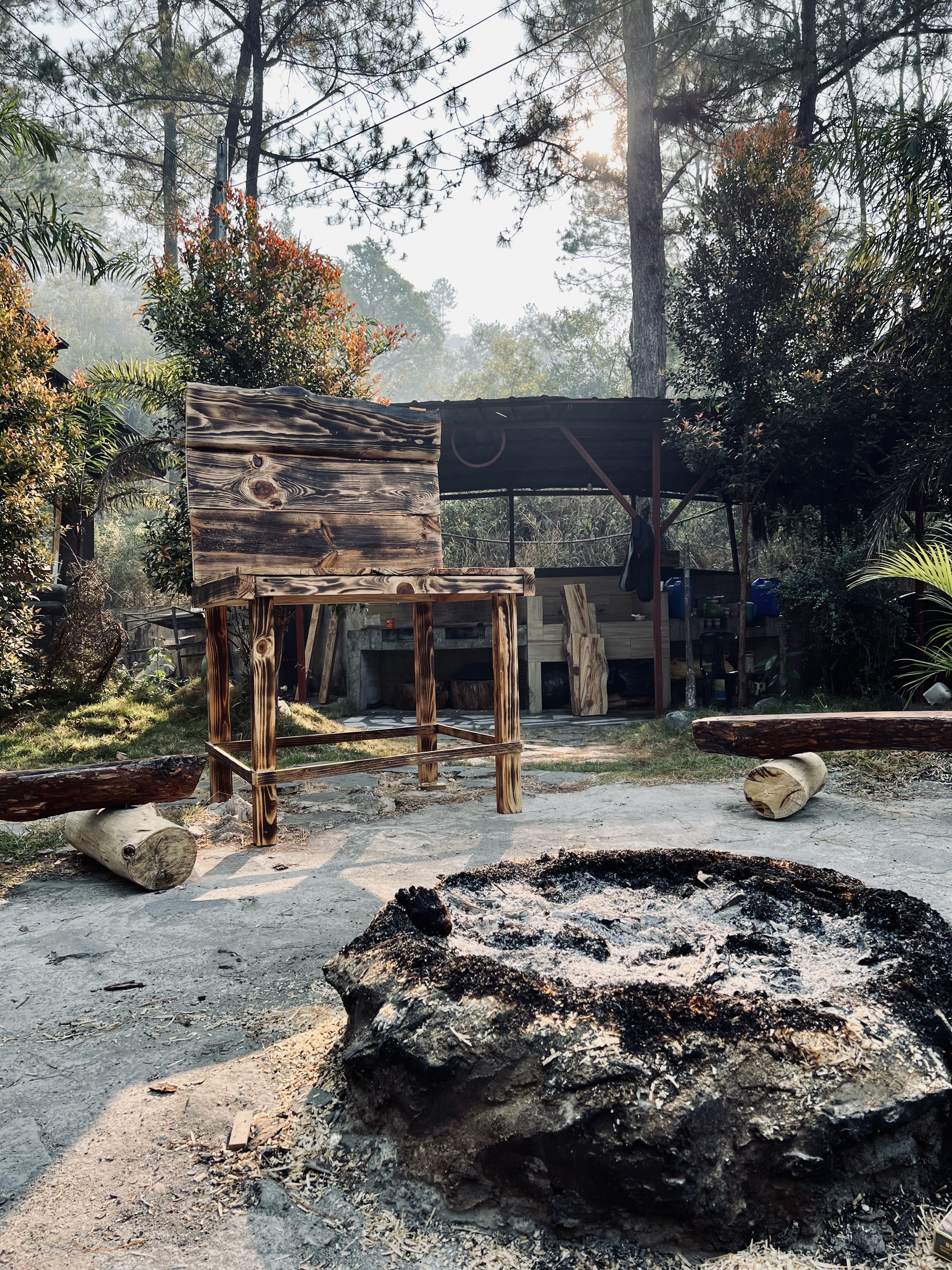 - Shared Living Room: A communal space with wooden seating and fireplace, perfect for relaxing, socializing with fellow guests, or enjoying the scenic views.