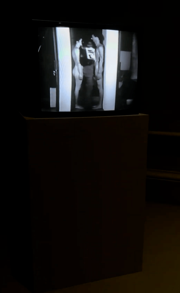 “Imponderabilia” is one of Abramovic’s iconic early works. In the original 1977 performance, Marina and her partner Ulay stood naked in a narrow doorway, forcing people to squeeze between them to enter the gallery.