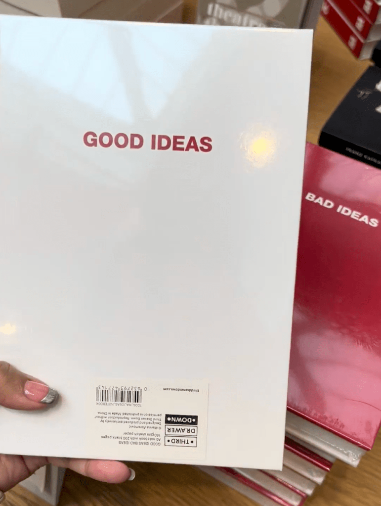 I don’t usually buy souvenirs unless I can use the item. I found some useful ones from Marina’s merch, including this “Bad Ideas/Good Ideas” journal. As a writer, I couldn’t resist.