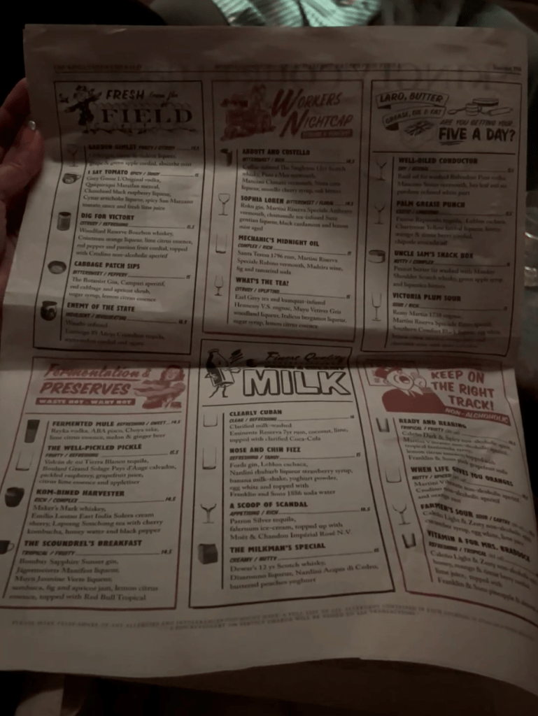 Even the menu was an experience. Instead of a plain old list of cocktails, we found a menu cleverly disguised as a newspaper on the table.