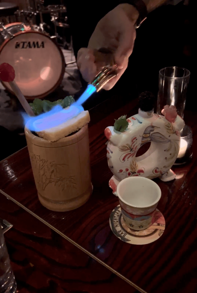 The drinks are just as creative as the setting. Funky presentations, delicious flavors, and yes, they’re pricey—but so worth it for the experience. We may have overindulged a little, but that worked in our favor because the staff surprised us with free shots! 🤣