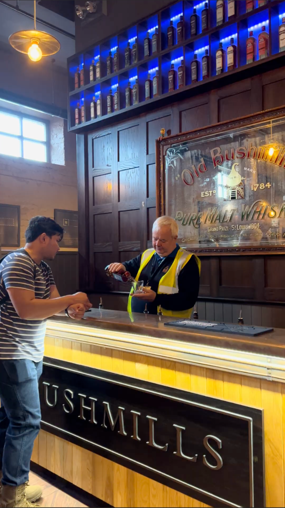 While I won’t spoil everything, I’ll share a few highlights. Since Bushmills is the oldest licensed whiskey distillery in the world, we got to see some fascinating old tools and equipment that are no longer in use today. We also saw the modern production process, from fermentation to bottling, which gave me a newfound appreciation for the craftsmanship and teamwork behind every bottle.